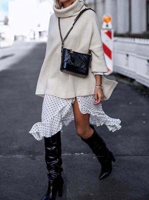 Ну, во-первых не торопитесь откладывать в дальний ящик свои легкие летние платья и юбки, потому что именно они могут стать хорошей основой для сочетания с тяжелыми и фактурными тканями в холодную пору. А значит, ваш гардероб может стать еще более функциональным, чем когда-либо.